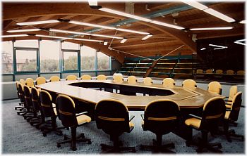 Lo spazio disponibile potrà essere diviso, con pareti mobili insonorizzate, in un numero di sale variabile fino ad un massimo di ambienti di capienza diversa, da 30 a 350 posti. Banchi di regia e apparecchiature tecniche mobili assicurano agli spazi grande efficenza operativa. Tutte le sale dispongono di pedana per il tavolo di presidenza e di podio per il relatore. Al primo piano sono annessi uffici operativi come: sala stampa, segreteria tecnico-scientifica, spazi per posters sessions, centro slides. |